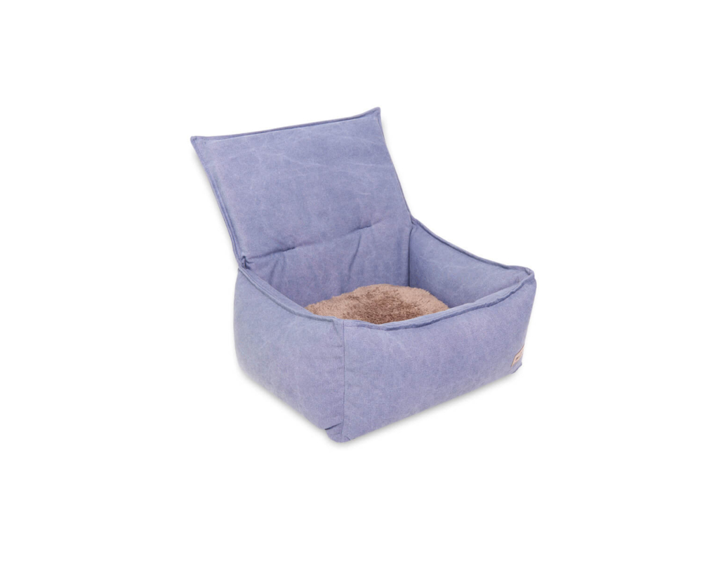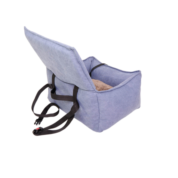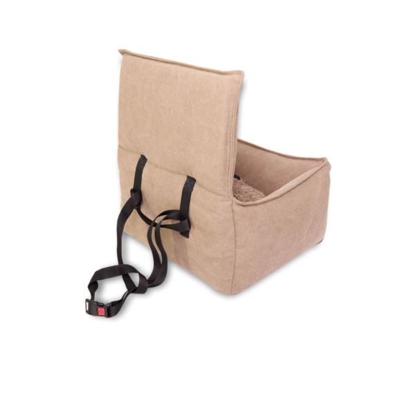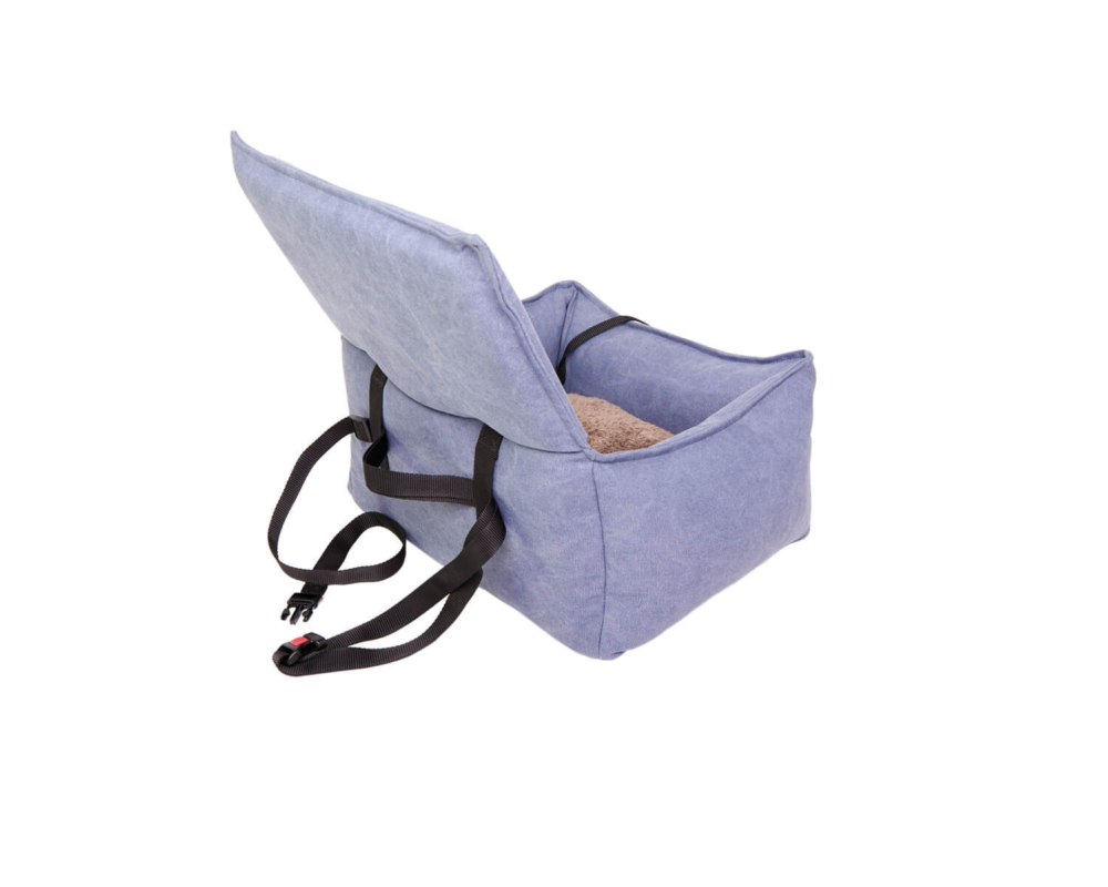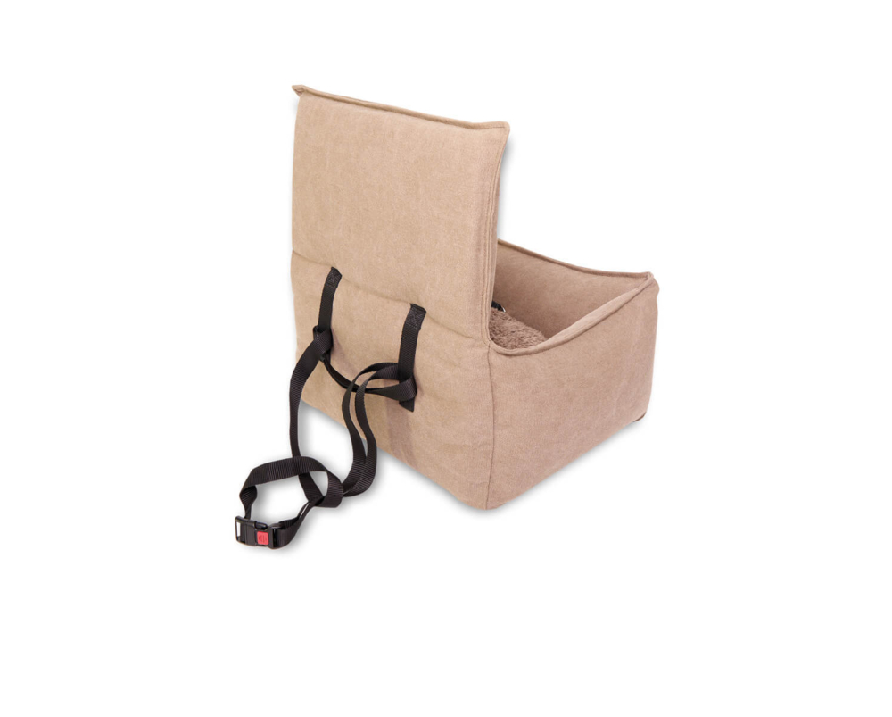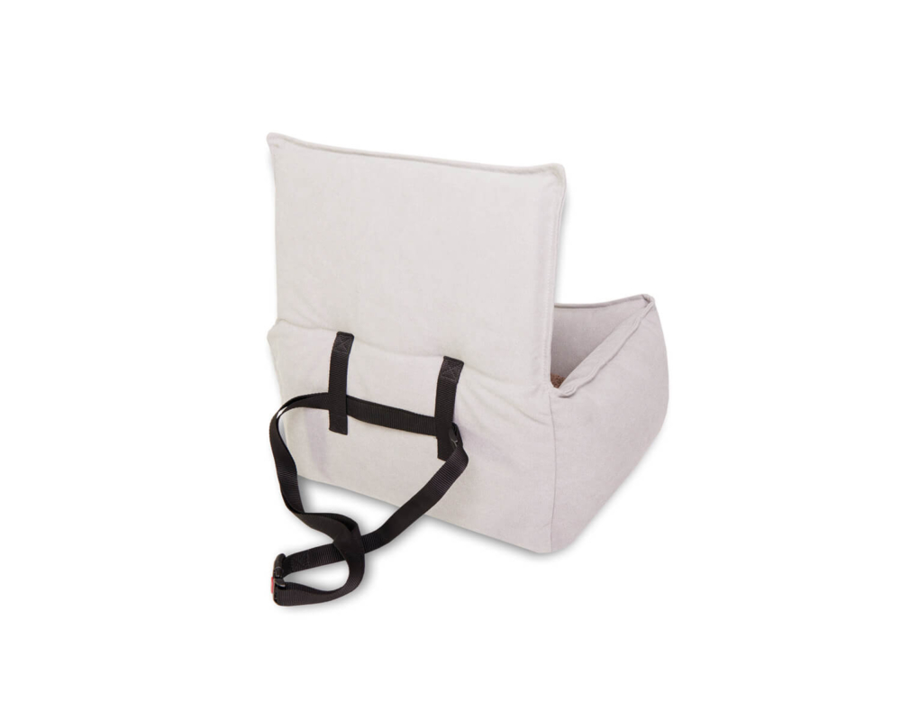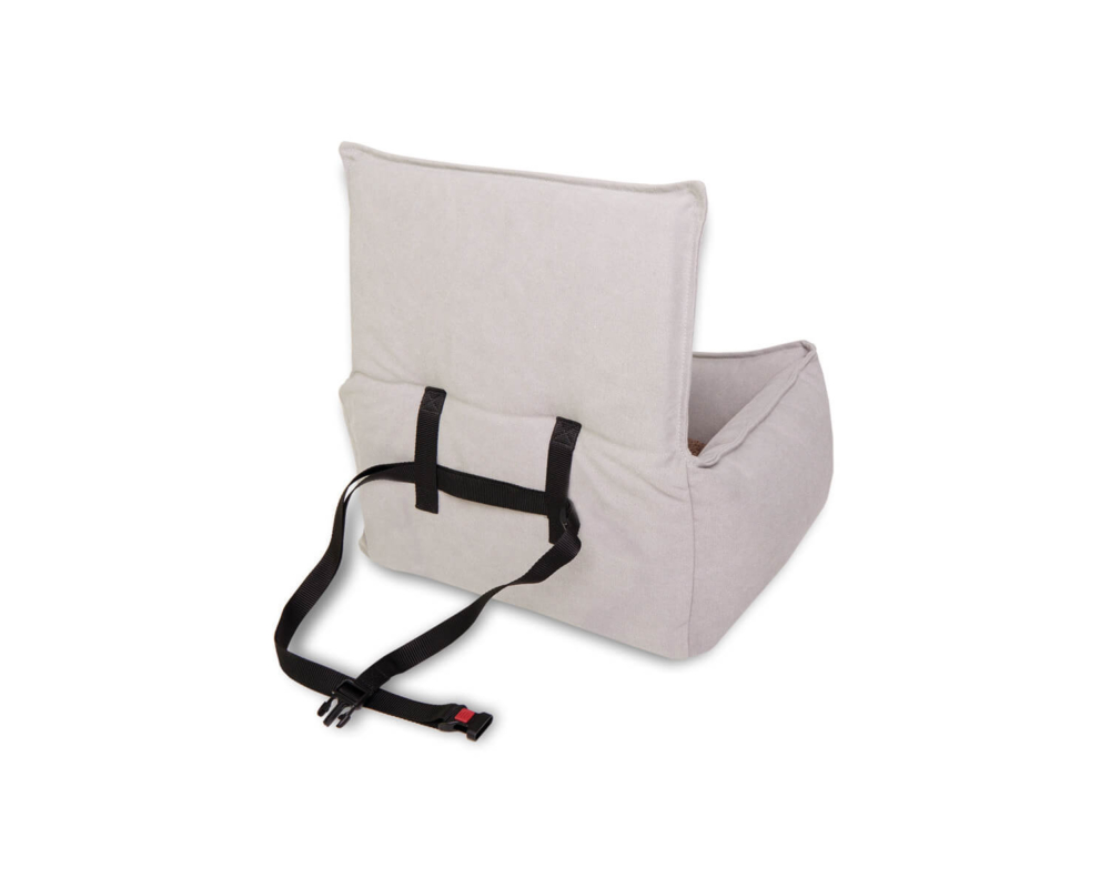Gil is a comfortable car kennel, designed for small/medium-sized dogs. Travelling has never been so comfortable, more than a cot, Gil is a real car seat thanks to the carabiner to be attached to the collar or pettorina of your pet and equipped with belt buckle with safety lock that allows you to attach it to the car seat for greater stability. Essential for those who love to travel, it can also be used as a sofa bed. Extra comfort thanks to the soft filling of hypoallergenic wadding. The cover in resistant, scratch-resistant cotton fabric, with vintage finish, is combined with the soft touch of the seat, made of warm and dense plush fabric, which keeps the heat for a long time. Available in 4 neutral colours.