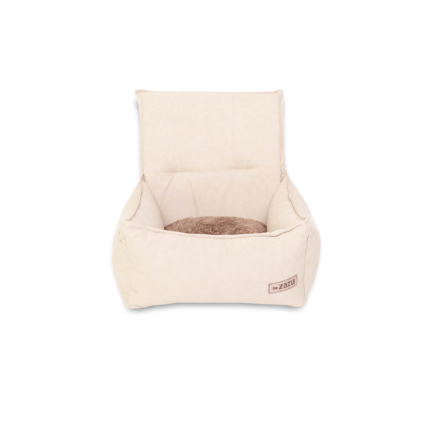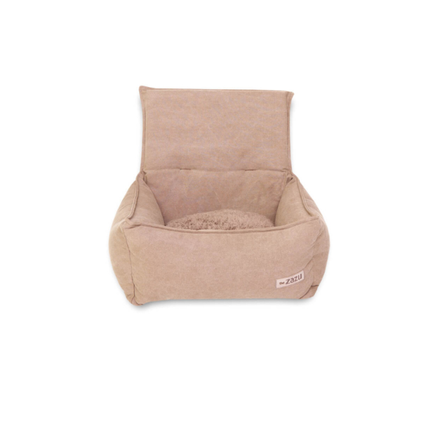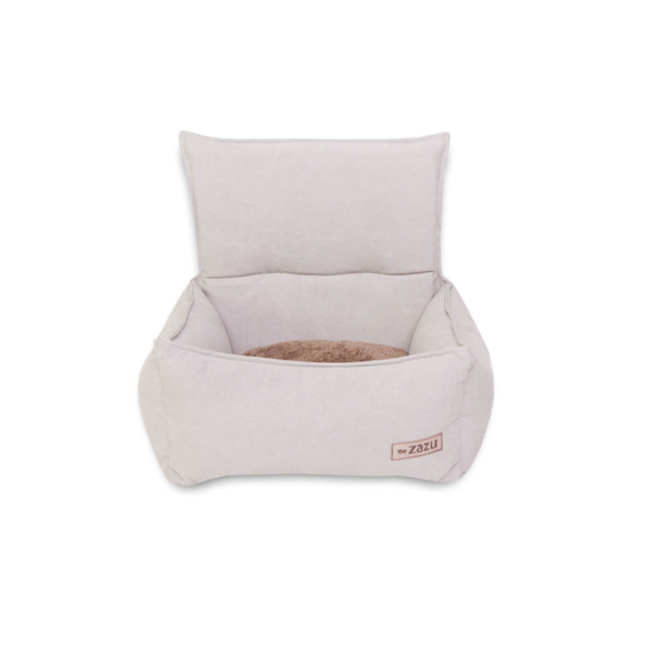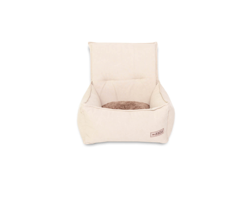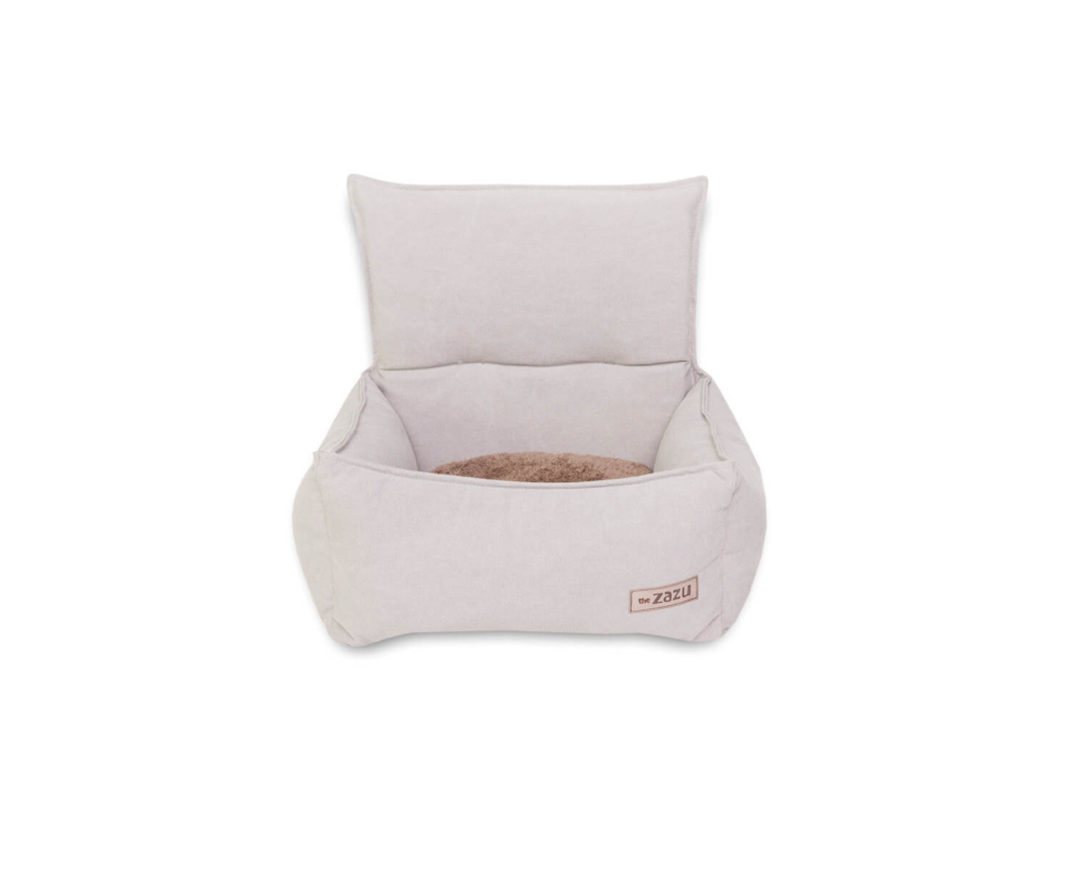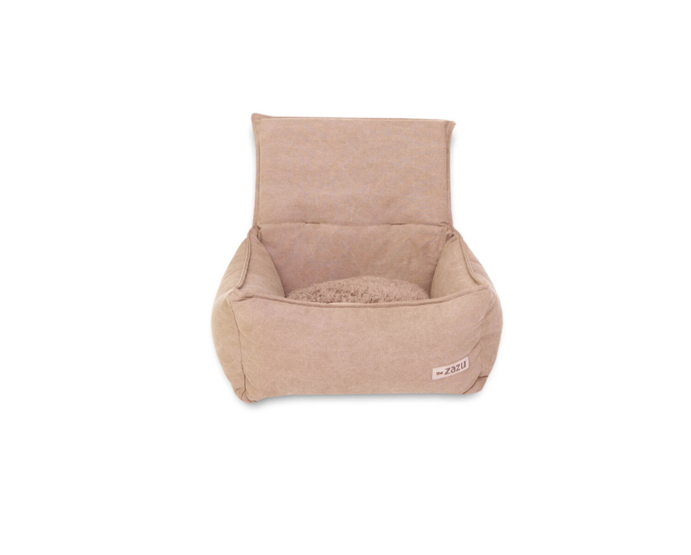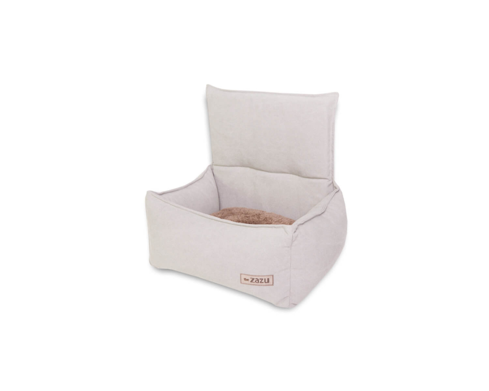 Gil is a comfortable car kennel, designed for small/medium-sized dogs. Travelling has never been so comfortable, more than a cot, Gil is a real car seat thanks to the carabiner to be attached to the collar or pettorina of your pet and equipped with belt buckle with safety lock that allows you to attach it to the car seat for greater stability. Essential for those who love to travel, it can also be used as a sofa bed. Extra comfort thanks to the soft filling of hypoallergenic wadding. The cover in resistant, scratch-resistant cotton fabric, with vintage finish, is combined with the soft touch of the seat, made of warm and dense plush fabric, which keeps the heat for a long time. Available in 4 neutral colours.