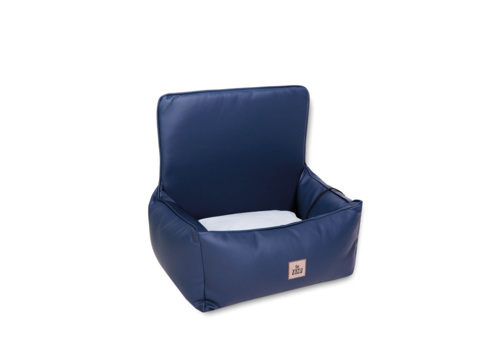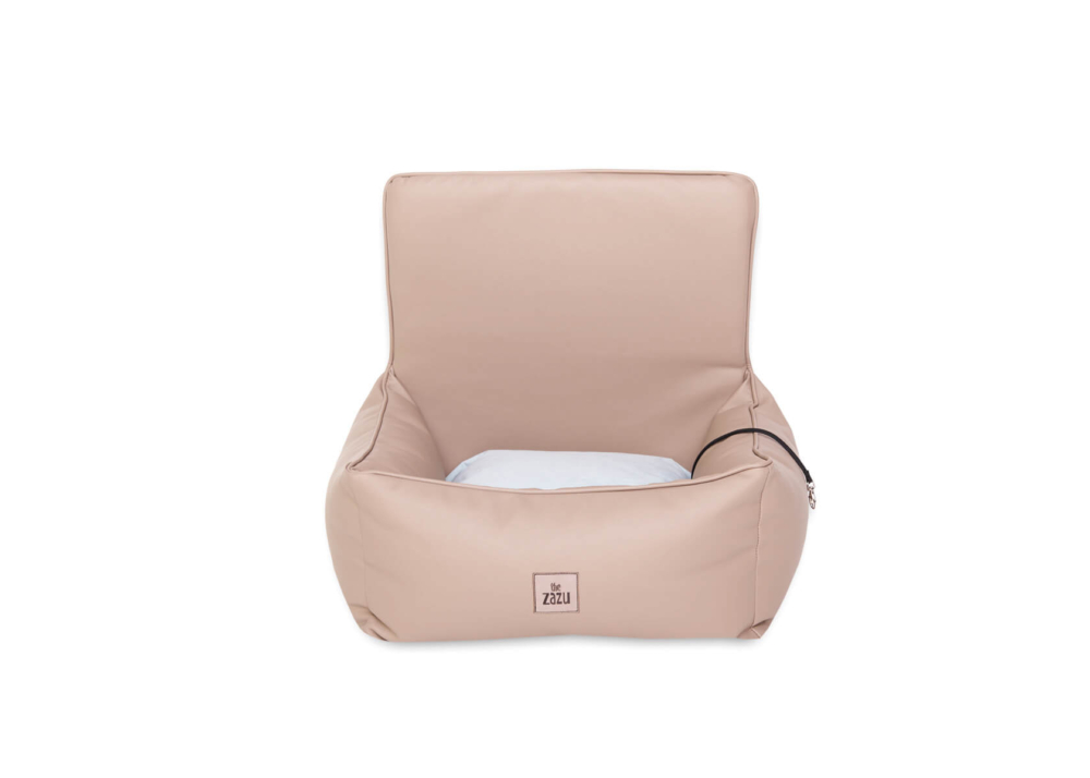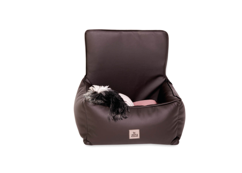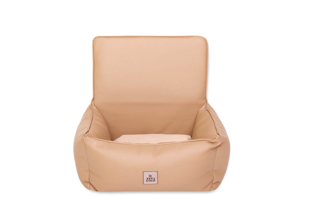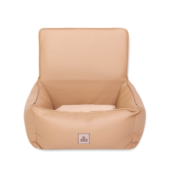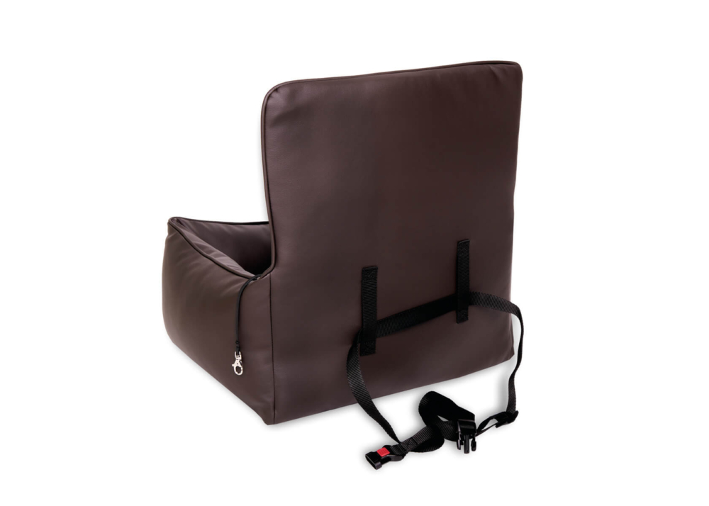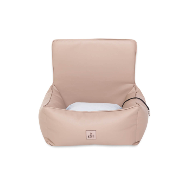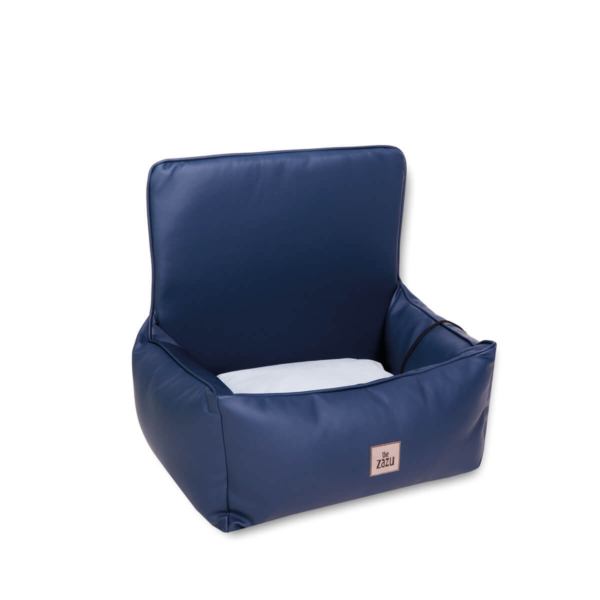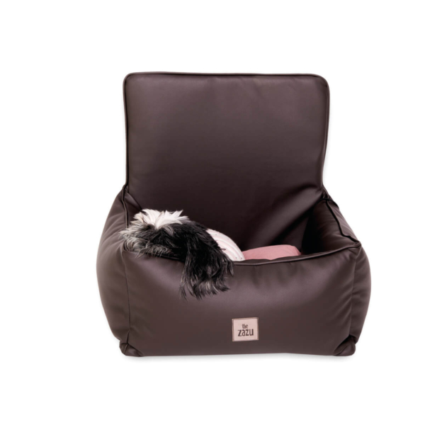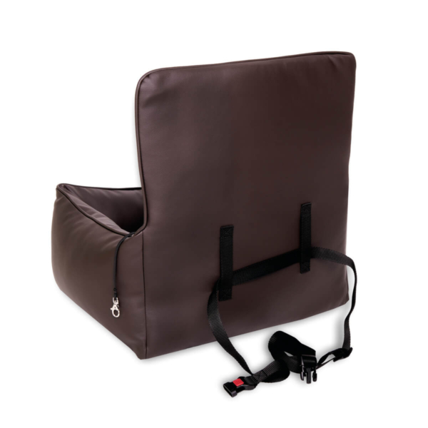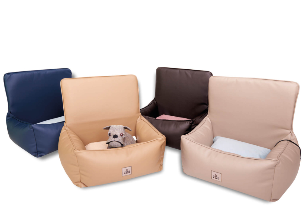 Basie is a comfortable car kennel, designed for small/medium-sized dogs. Stress-free travel has never been easier, More than a cot, Basie is a real car seat thanks to the carabiner to be attached to your pet’s collar or harness and equipped with a buckle belt with safety lock that allows you to attach it to the car seat for greater stability. Essential for those who love to travel, it can also be used as a sofa bed. Extra comfort thanks to the soft filling of hypoallergenic wadding. The cover in elegant leather-like fabric, for an eco-sustainable and vegan choice, easy to clean while the seat, made of warm and light fabric with short pile and thick, practical to clean but resistant to wear. Available in 4 refined nuances, all matched with bright colours.