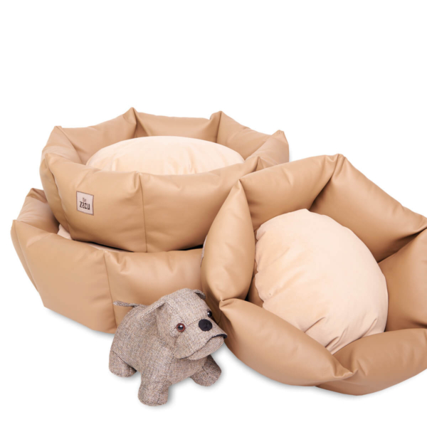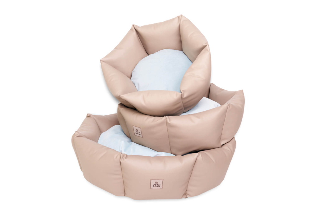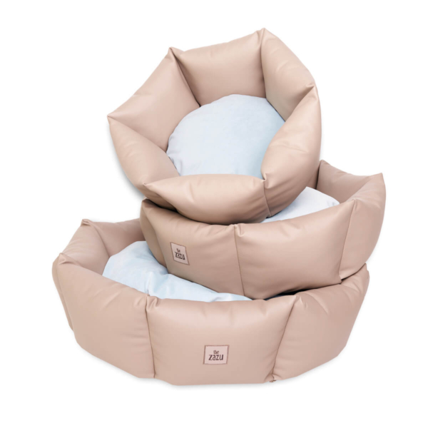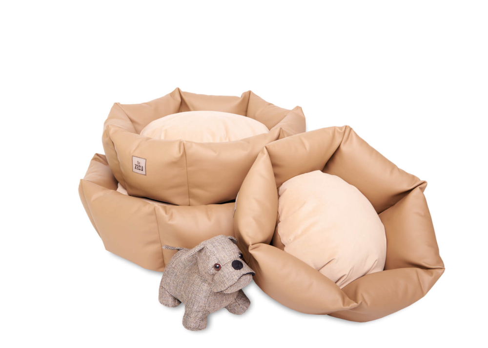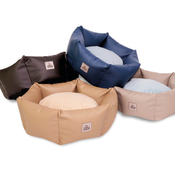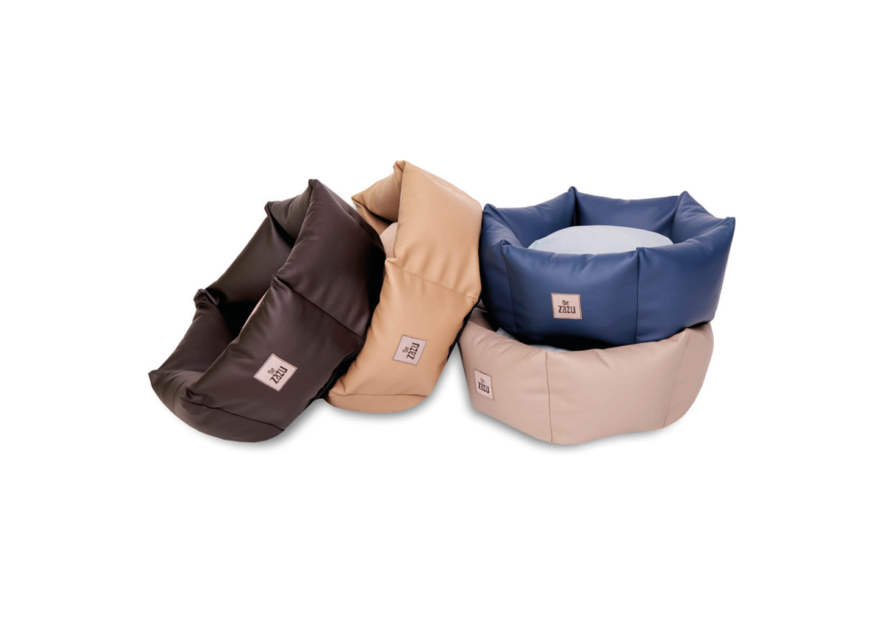 Cozy is a soft kennel with high edges, completely removable, suitable for pets who like to be wrapped in a warm hug, Equipped with a removable cushion made with soft flake of hypoallergenic and outer in a short pile fabric, with a pleasant texture extra soft, light, warm and resistant to wear. The cover of the kennel is in imitation leather, for an eco-friendly and vegan choice that does not neglect style. Cleanliness in the forms that reflects a choice of colors, refined and elegant. The warm tones of chocolate, taupe and blue are pleasantly matched with a range of vibrant nuances.