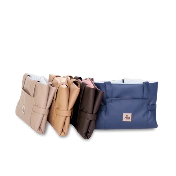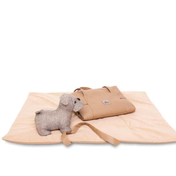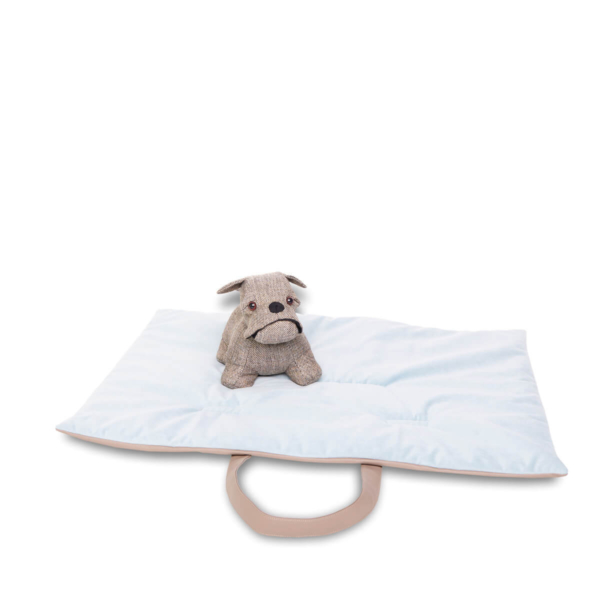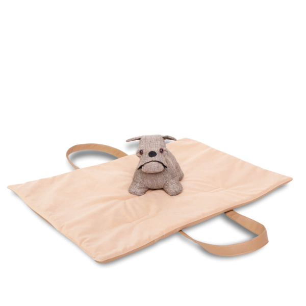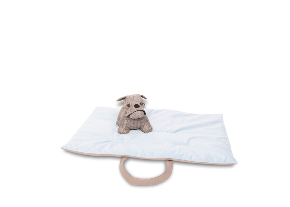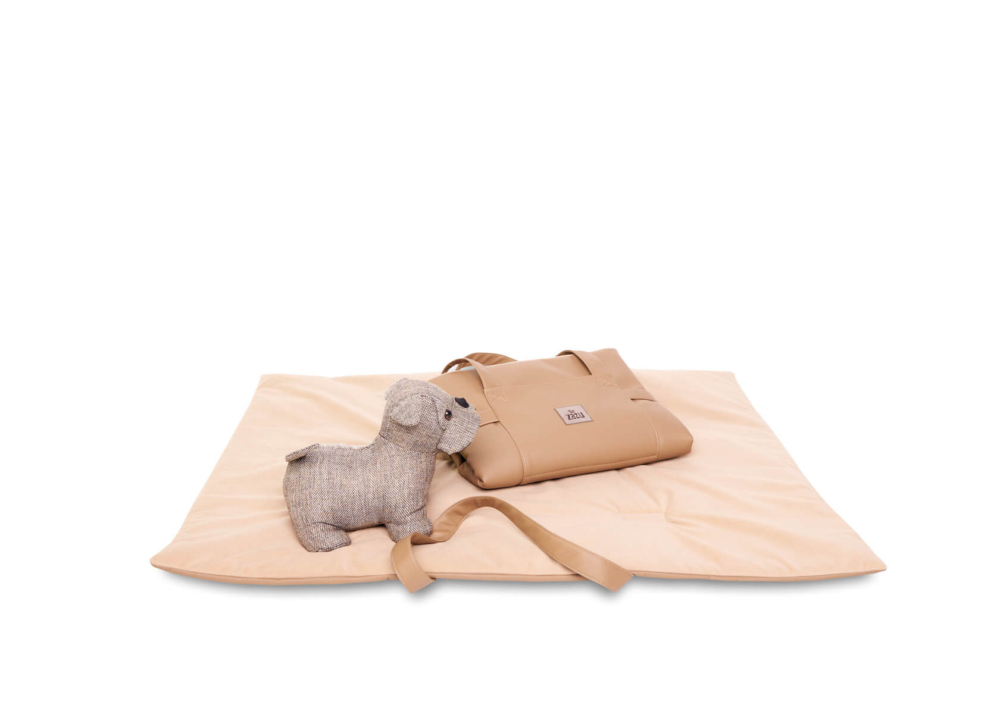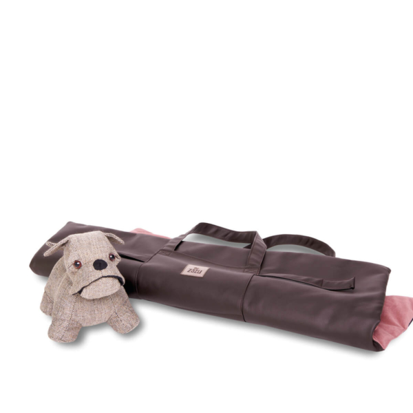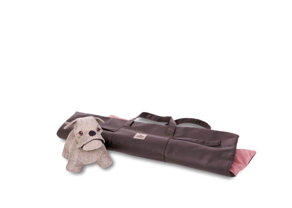 Dave, the comfort of a mat that looks like a bag. The foldable mat, practical and functional to use anywhere. Equipped with a comfortable and resistant shoulder strap/ handle, for easier transport, in the front has been designed a pocket for small items, useful for the health book of your pet, leash or small games. To be used when travelling by car, or as a perfect cover to put on the sofa or for example during the veterinary check-ups, if your four-legged friend does not like to stand on the cold table of visits, Dave is the optimal solution, Once opened it becomes a comfortable mat, with an interior in soft flake of hypoallergenic wadding and an outer cover in fabric similar to leather easy to clean, for an eco-friendly and vegan choice, the part in contact with your pet is made of warm, short and thick pile fabric, which guarantees a more comfortable and warm support. Available in 4 elegant colour combinations.