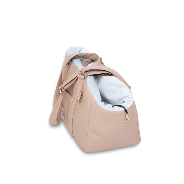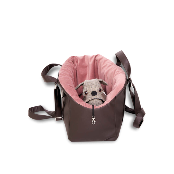 The refined bag/ carrier Keith o has been designed for small pets weighing less than 5 kg (chihuahua, maltese,…) or puppies, to always carry them with you, comfortable and warm, during walks or to put them in the shopping cart in comfort and safety. With removable inner cushion, made of soft fabric with short and thick pile, light texture, easy to clean but resistant to wear. The bag is equipped with both a safety carabiner to be attached to the collar/harness to prevent it from accidentally getting out, and a practical adjustable shoulder strap. Always warm and always with you. Interior in soft, hypoallergenic wadding flake and leather-like fabric cover for an eco-friendly and vegan choice, available in 4 bright shades. Equipped with external pocket, useful to always carry small games, or for the health book.