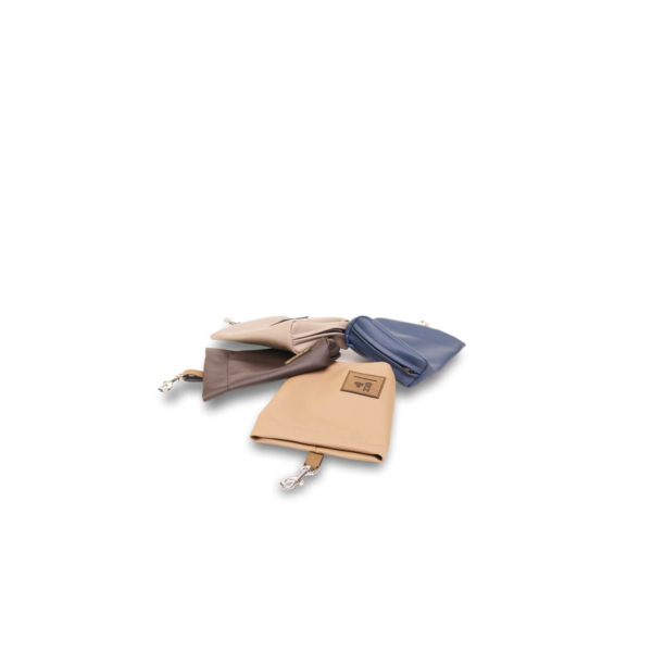Tatum is the versatile accessory “2 in 1” that can not be missed, light and practical thanks to the magnetic closure for quick access to the part dedicated to the snack holder with the premietti for our faithful friend. While at the bottom of the article there is a zip to store the hygiene bags, with slit on the front for a quick and practical extraction. The article has a comfortable and durable metal carabiner, allowing you to attach it to the leash or bag, for greater freedom of movement. Available in the 4 colors of the Smooth line, made of leather-like fabric, for an eco-sustainable and vegan choice. Easy to clean and water resistant.