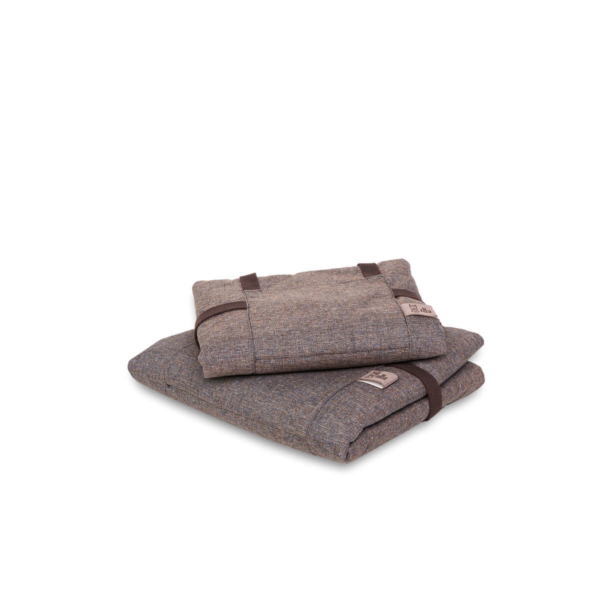 Bix, looking like a bag, is the foldable mat, practical and functional to use anywhere. Equipped with a comfortable and resistant shoulder strap/ handle, for easier transport, in the front has been designed a pocket for small items, useful for the health book of your pet, leash or small games. To be used when travelling by car, or as a perfect cover to put on the sofa or for example during the veterinary check-ups, if your four-legged friend does not like to stay on the cold table, Bix is the optimal solution, Once opened, it becomes a comfortable mat, with an inner layer made of soft, hypoallergenic cotton wool and an outer cover made of resistant melange fabric and an inner layer made of warm, short and thick pile fabric, which guarantees a more comfortable support for your pet. Available in 4 elegant colour combinations.