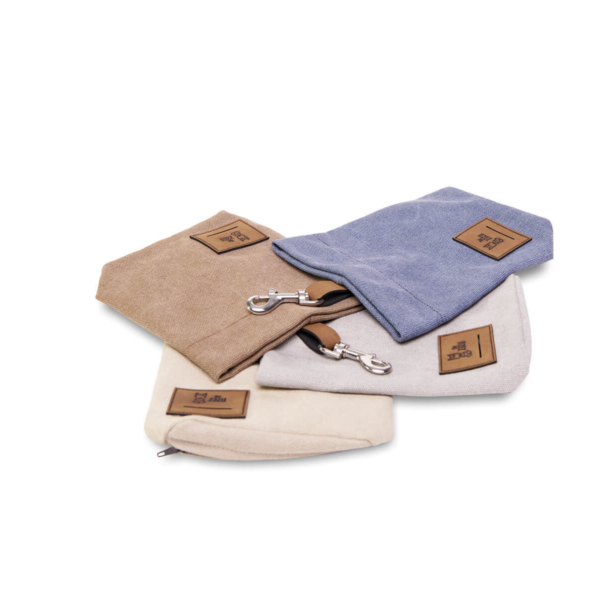 Getz è il versatile accessorio ” 2 in 1″ da avere sempre con sé, leggero e pratico grazie alla chiusura magnetica per un accesso rapido alla parte dedicata al porta snack con i premietti per il nostro fido amico. Mentre sul fondo dell’articolo è presente una zip per riporre i sacchettini igienici. L’articolo presenta un comodo e resistente moschettone in metallo, permettendo così di poter agganciarlo al guinzaglio o alla borsa, per avere maggiore libertà di movimento. Disponibile nei 4 colori della linea Modal in resistente tessuto in cotone anti graffio.