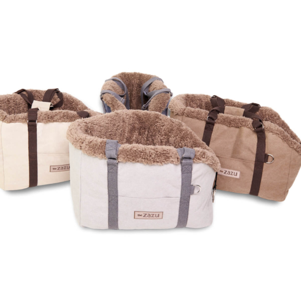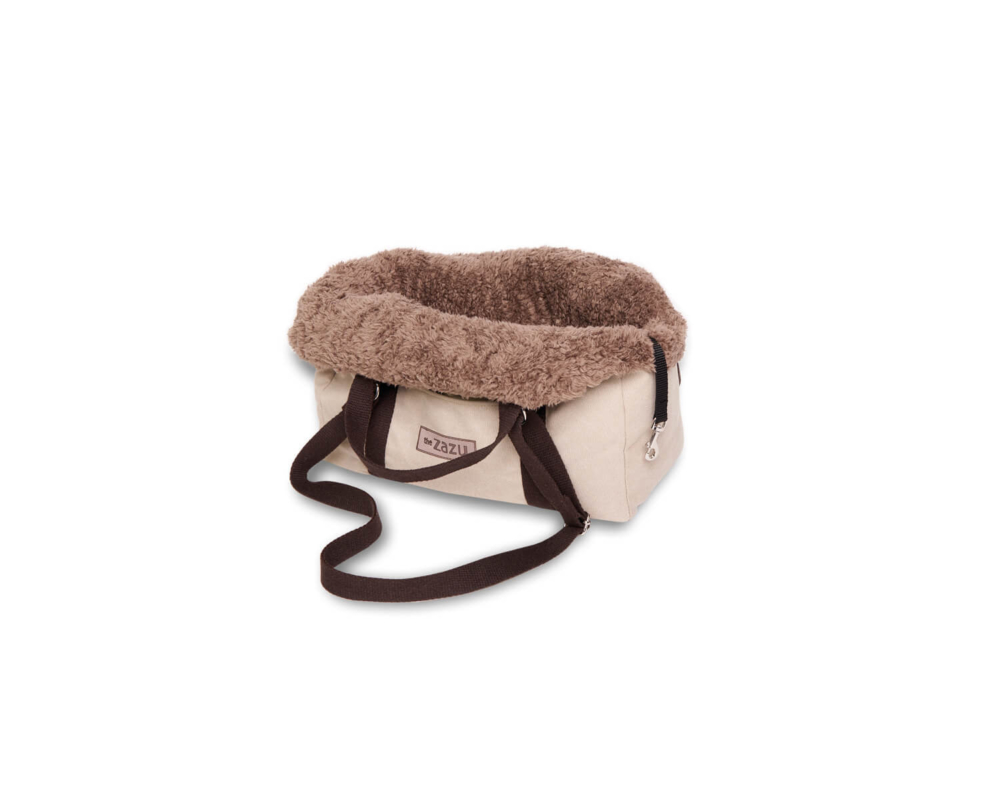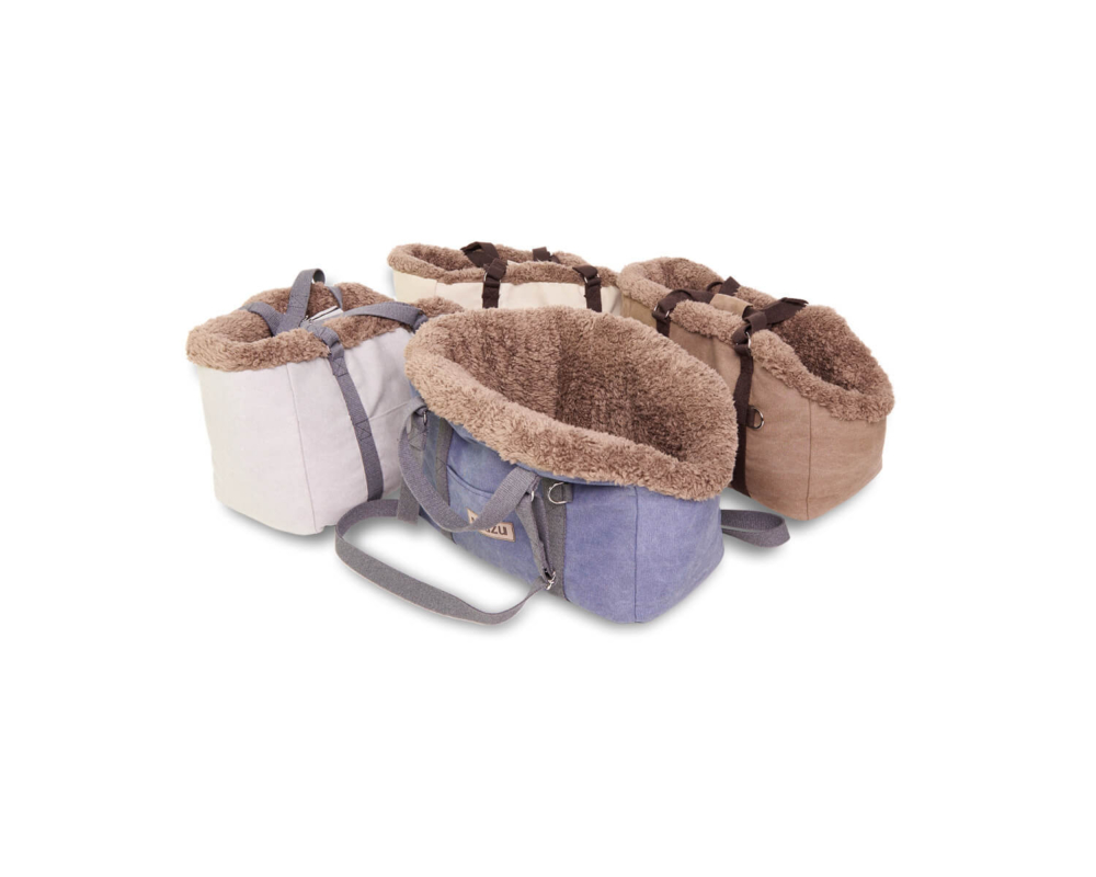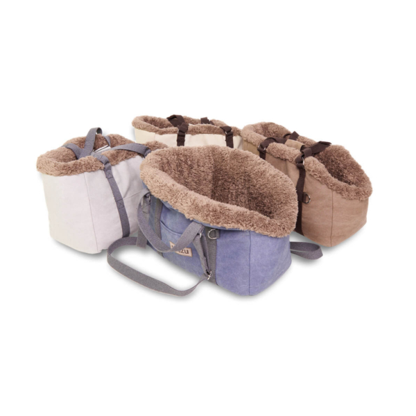 La vaporosa borsa/trasportino Jako è stata pensata per piccoli pets con peso inferiore ai 5 kg (chihuahua, maltese,…) o cuccioli, per portarli sempre con voi, comodi e al caldo, durante passeggiate o per metterli nel carrello della spesa in tutta comodità e sicurezza. Con cuscino interno estraibile e sfoderabile, realizzato in morbido e caldo tessuto a pelo denso in peluche. La borsa è dotata sia di moschettone di sicurezza da agganciare al collare/pettorina per impedire che possa accidentalmente uscire, sia di una pratica tracolla regolabile. Sulla parte frontale è stata pensata una tasca porta piccoli oggetti, come libretto sanitario del vostro pet o piccoli giochi del vostro amico. Sempre al caldo e sempre con voi. Interno in morbido fiocco di ovatta anallergico e rivestimento in resistente tessuto vintage in cotone anti graffio, disponibile in una gamma di colori neutri.